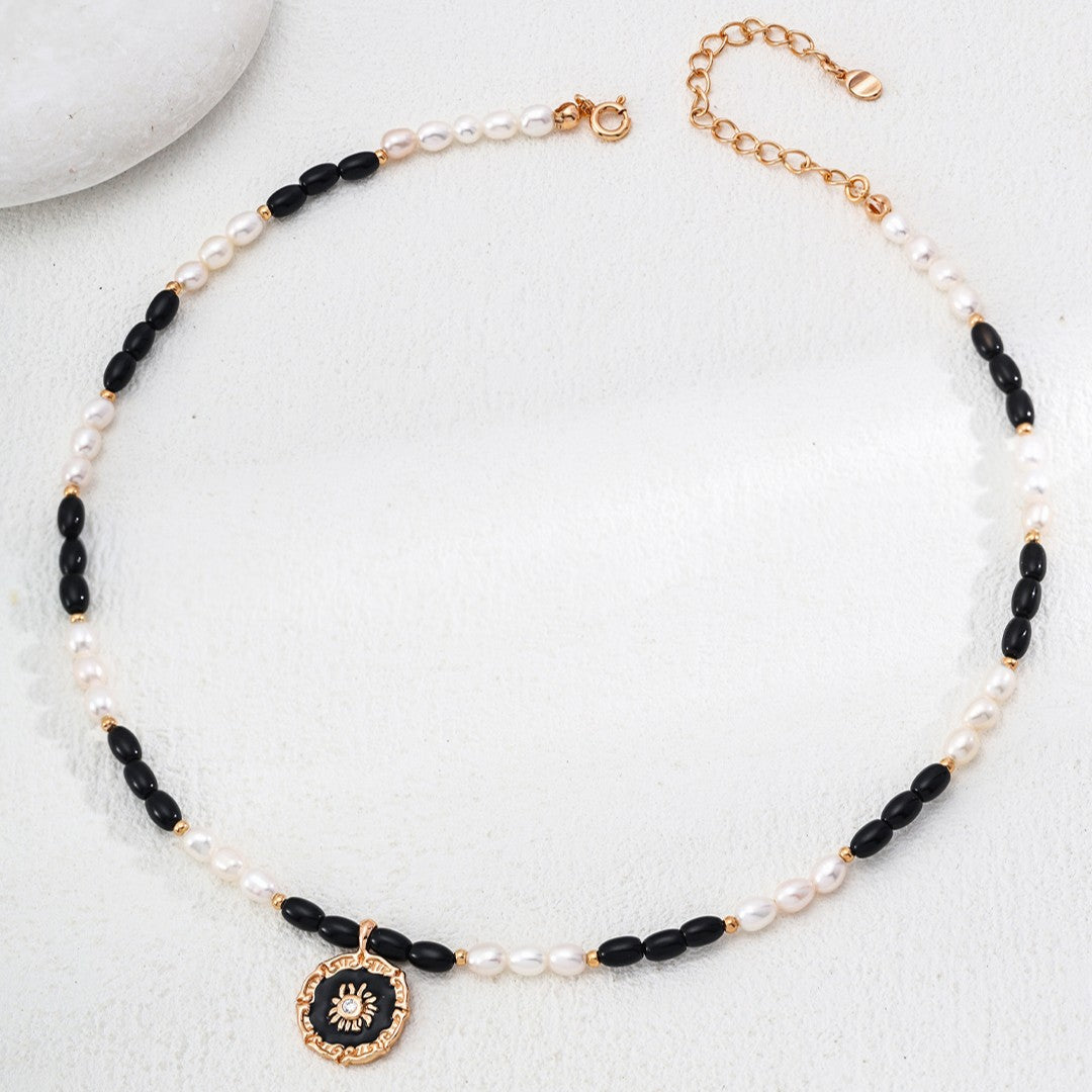 Gemstone: Pearl, Black Agate, Black Enamel, Zircon
