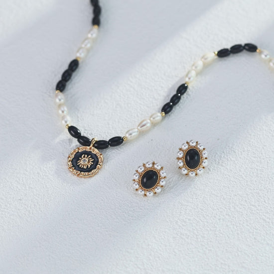 Pearl & Black Agate Jewelry Set