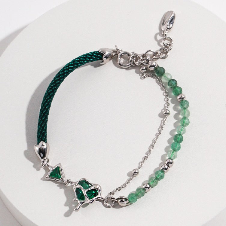 Gemstone: Strawberry Crystal, Green Zircon, Green Hemp Rope