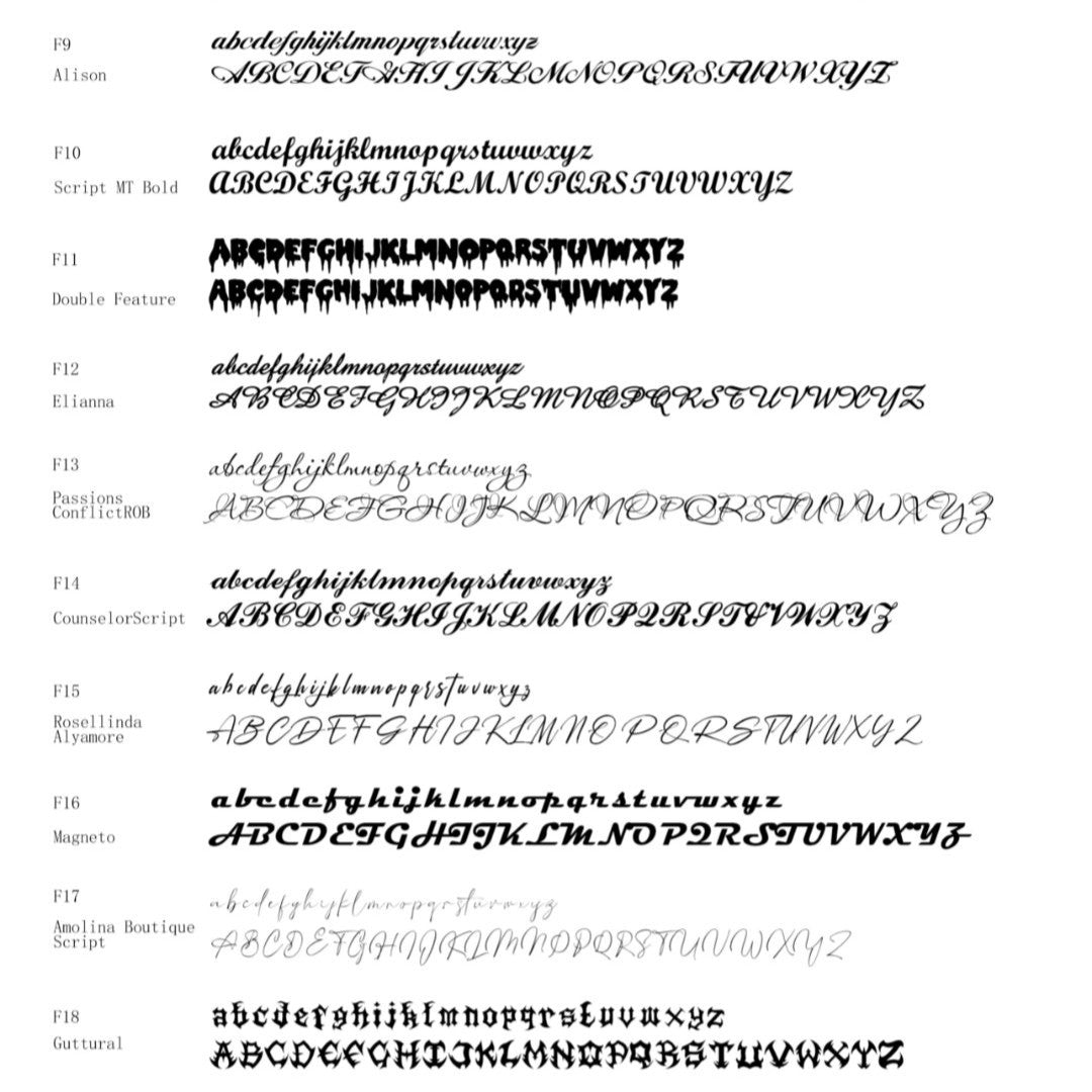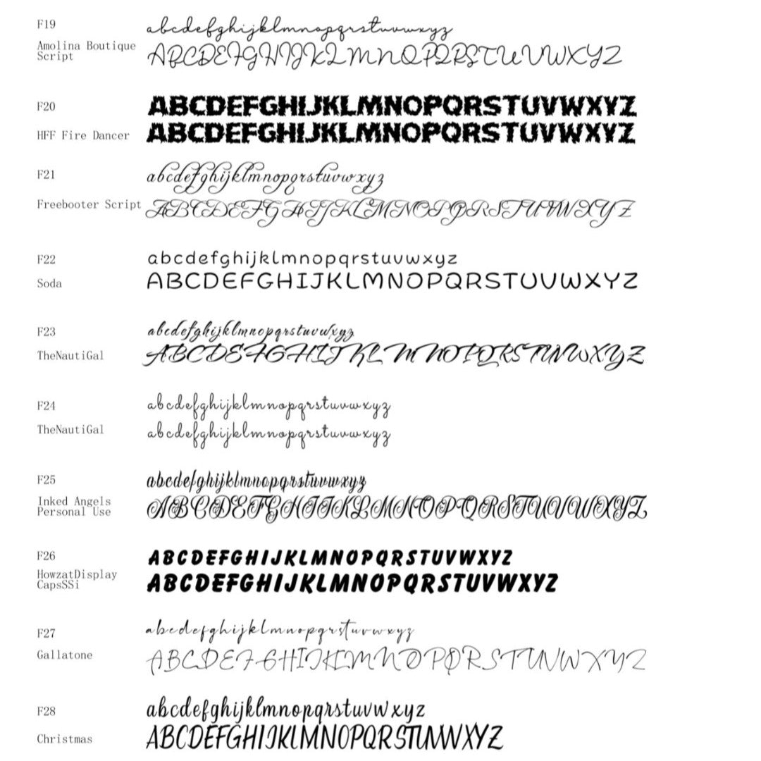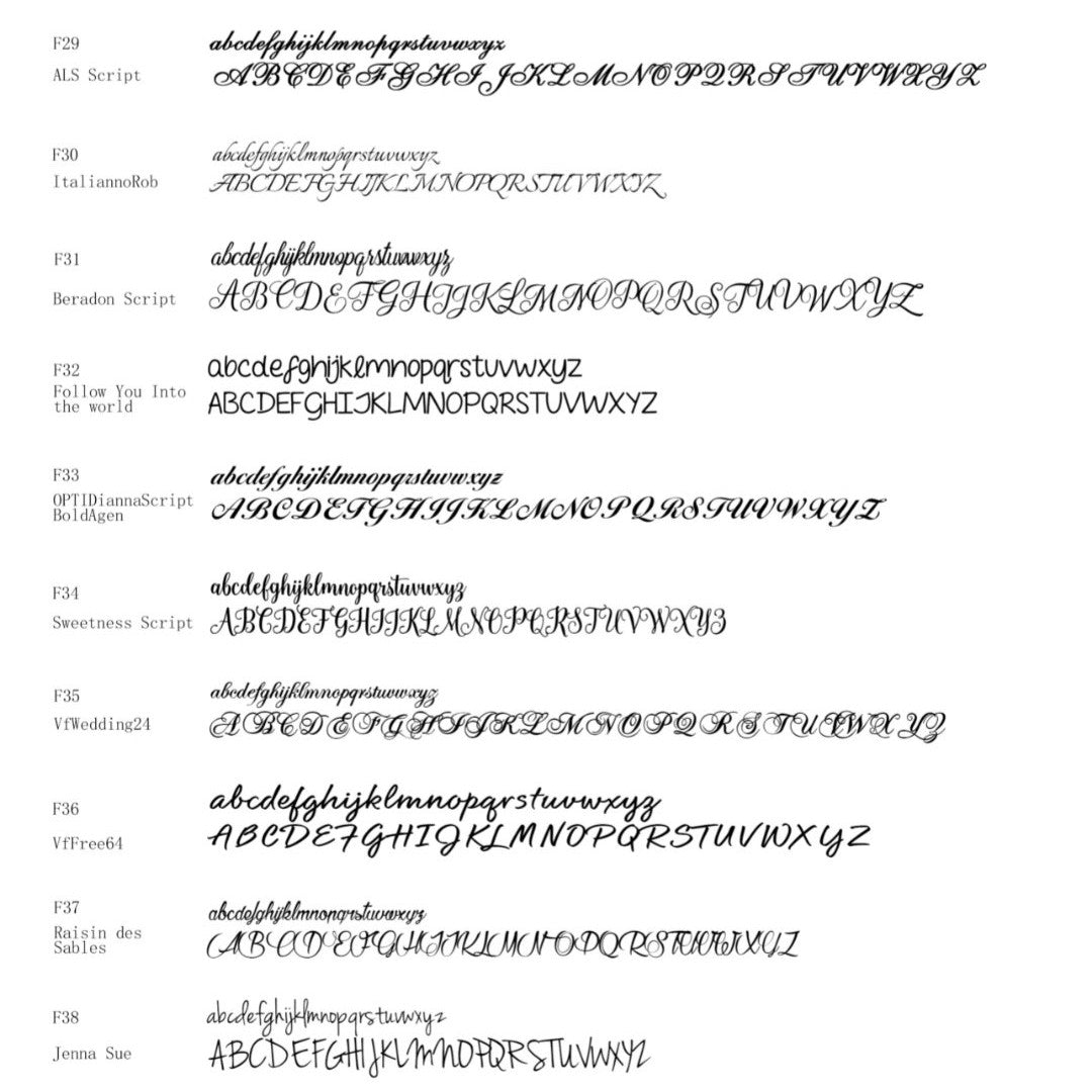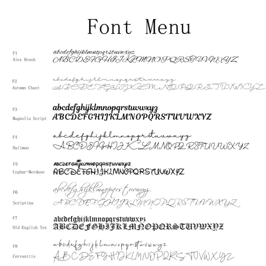 When placing an order, please indicate the selected font (refer to the last 5 images) through order notes or private messages to us.