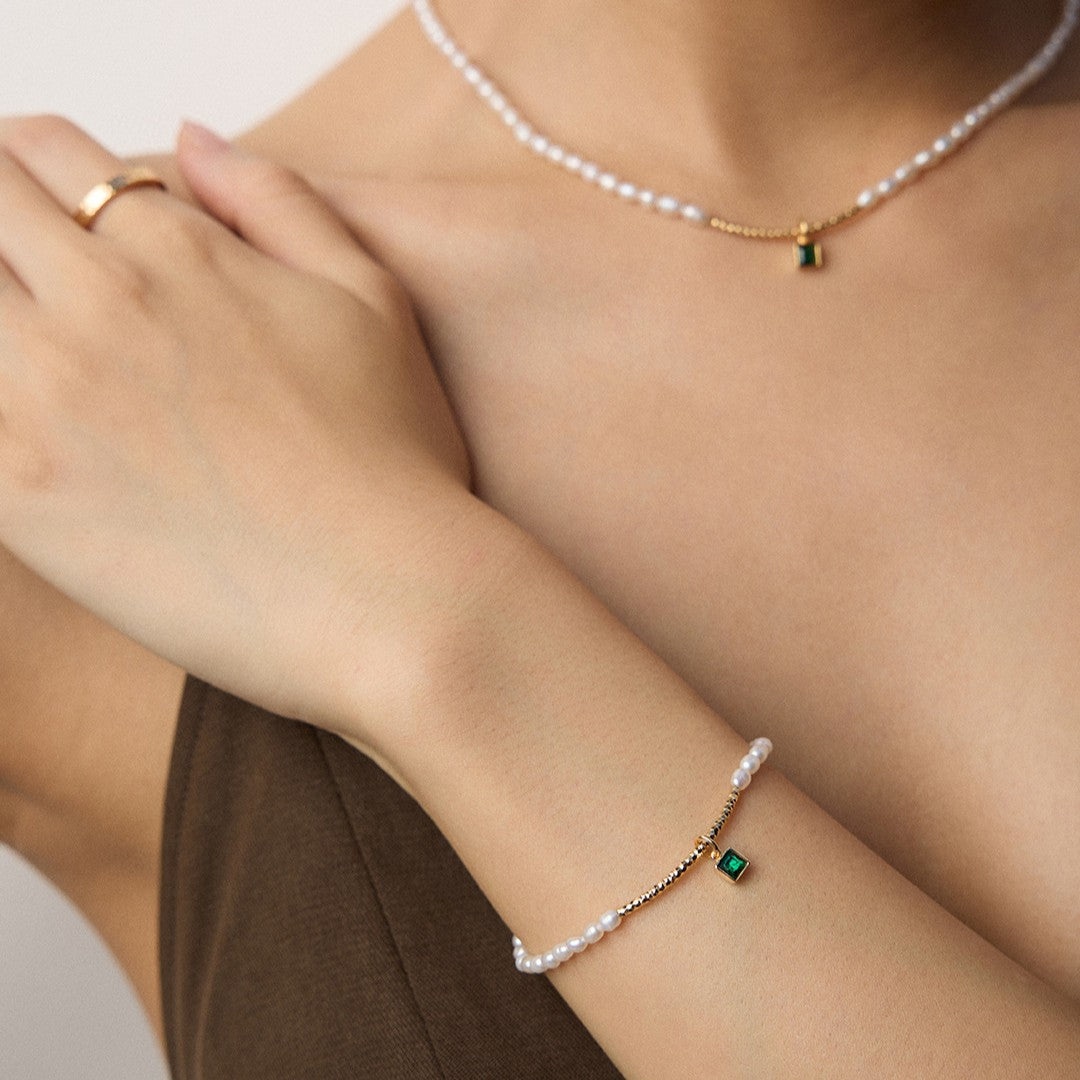 Gemstone: Pearl(4mm), Green Zircon
