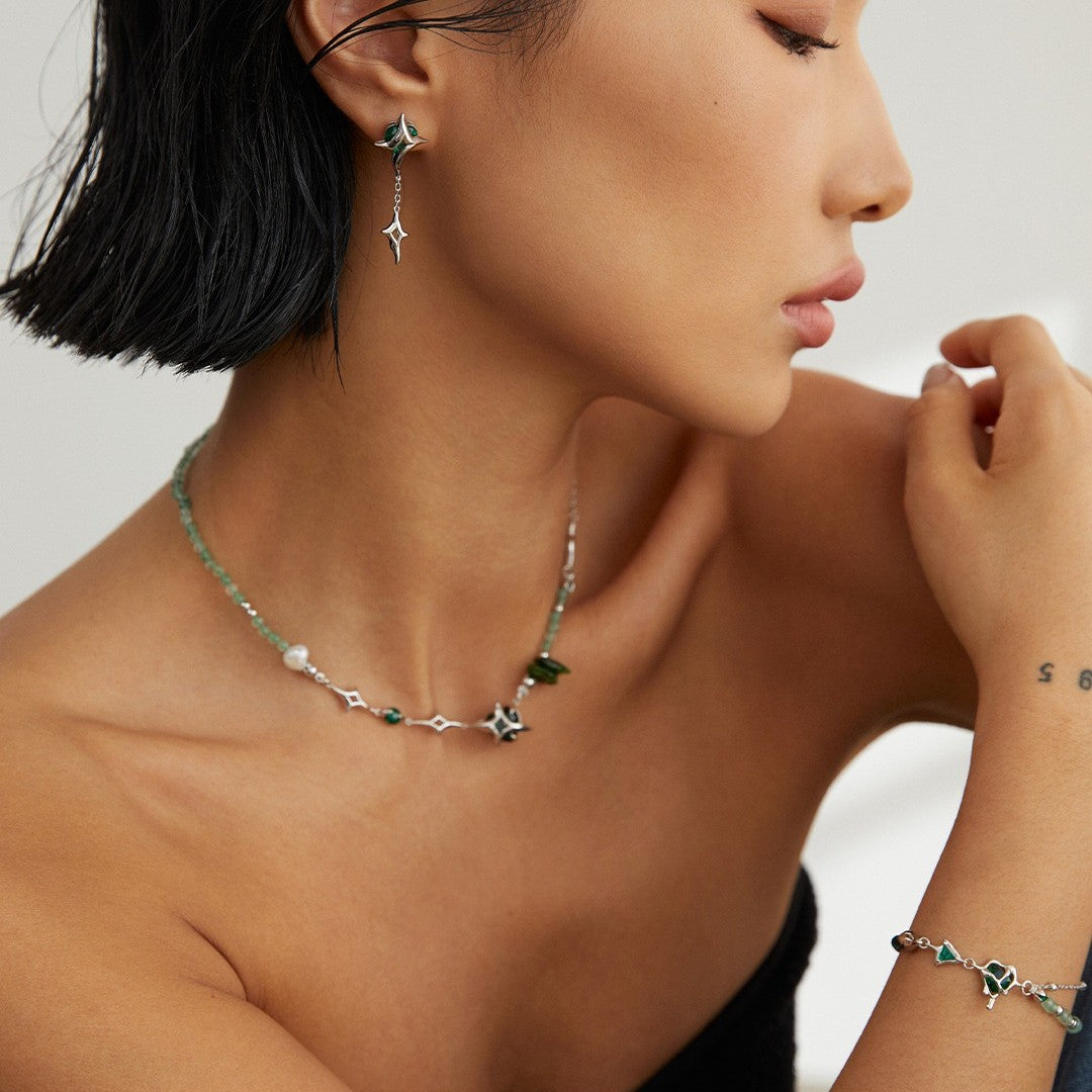 Gemstone: Strawberry crystal(3mm), Zircon(9mm/5mm), Pearl(7-8mm)