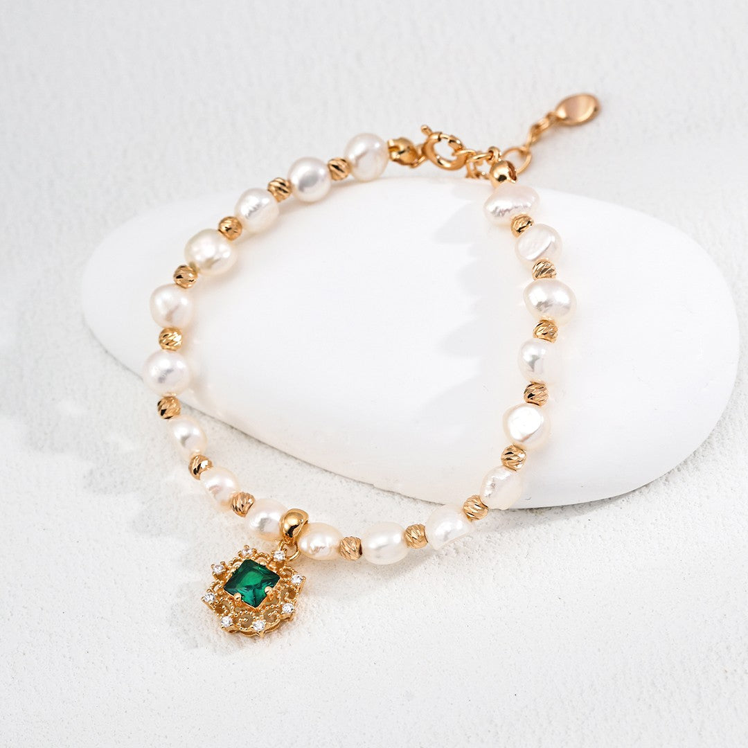 Synthetic Zircon Pendant Pearl Bracelet